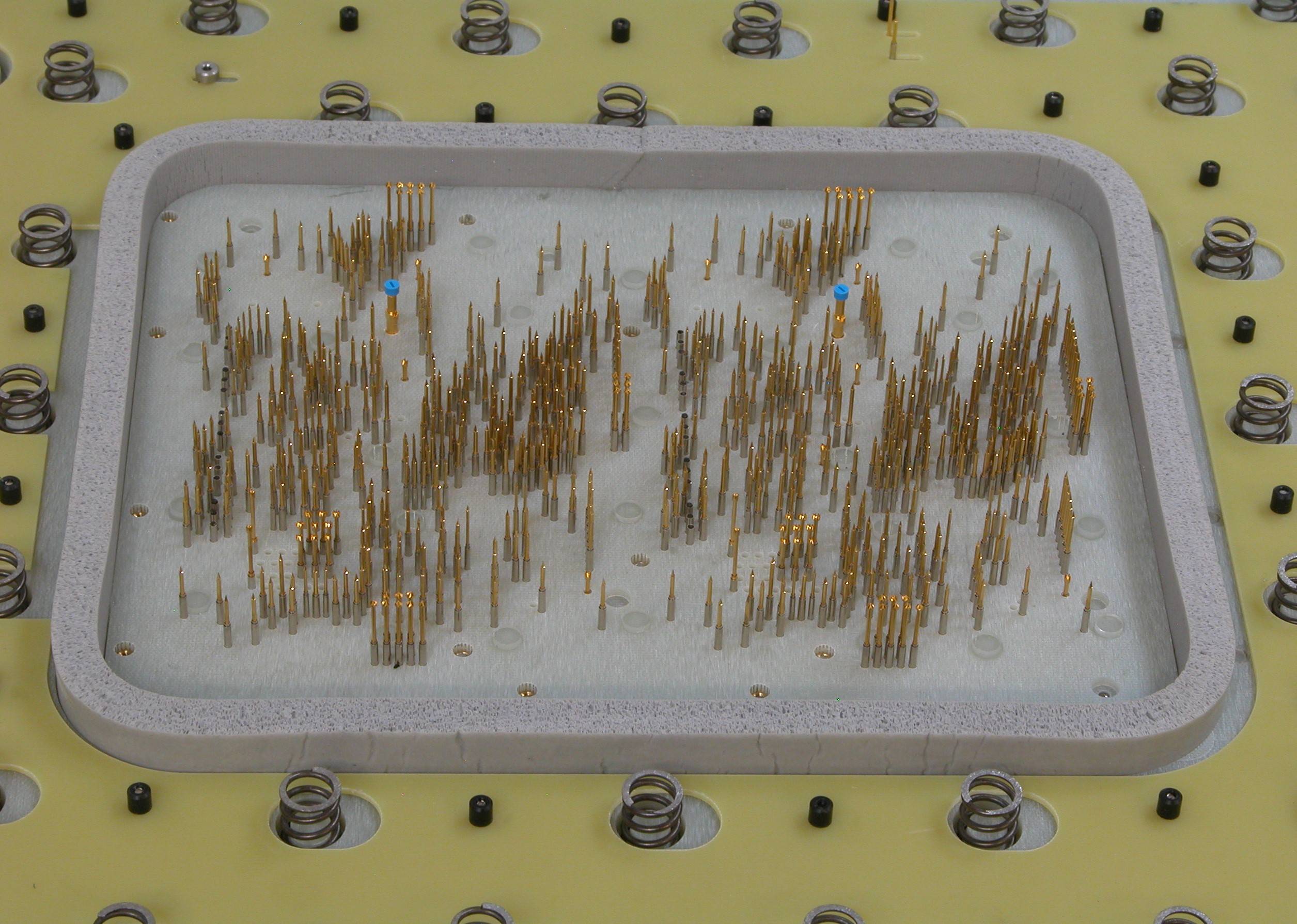 Bed of nails is used in industrial electronics to analyze, control and program a printed circuit board or equipped card. It consists of a tray on which spring-loaded test pins are placed. These are inserted into a sleeve to be replaced in the event of failure or wear.